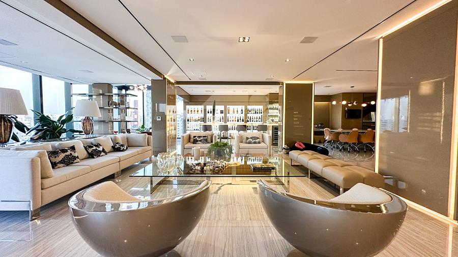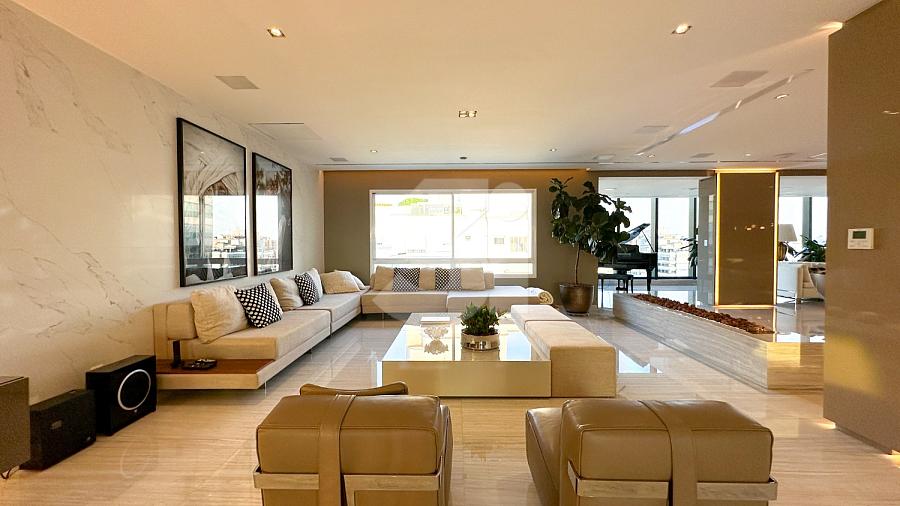 Cobertura duplex para venda em Moema Pássaros, com 800m², 4 dormitórios, sendo 4 amplas suítes, home theater, automação completa, mobília italiana, living amplo com telão, 100% reformada, mármore grego no piso + banheiro da suíte máster, Armani Grigio nos banheiros das suítes, piscina privativa, churrasqueira à gás e uma vista panorâmica privilegiada.